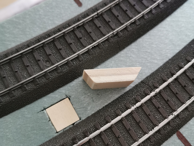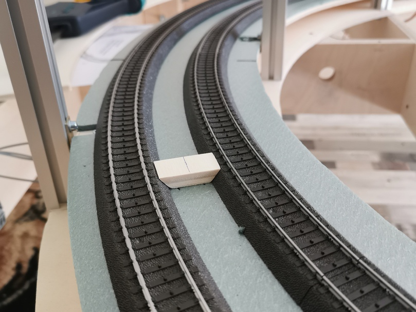 Eine schnelle Vorrichtung aus Kork, um die verlängerten Kupplungen ausrichten zu können.