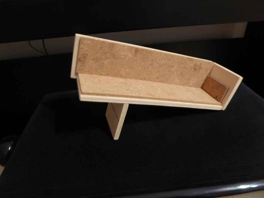 Zuerst wurden z.B. die beiden unteren Klötze auf die Bodenplatte geklebt und dabei mit dem Lineal ausgerichtet.