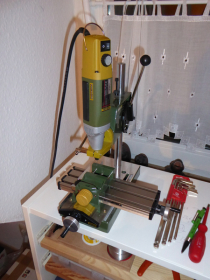 Mit dem Koordinatentisch für kleine Fräsarbeiten oder exaktes Positionieren einzelner Bohrungen .