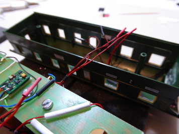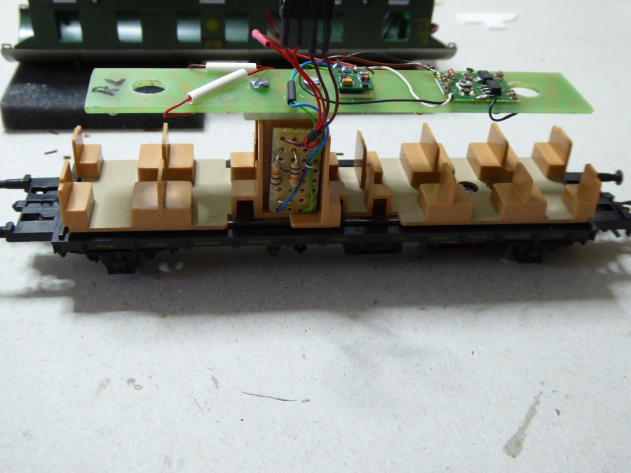 Manches wird sicher wegfallen, aber dazu später. Vorne seht Ihr die "halbe" Basisplatine von ruhrmodell mit den 6 LEDs und dem Anschlussmodul.